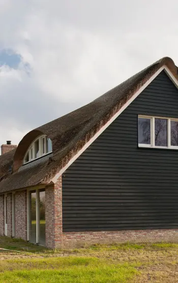 Een pareltje dat schittert door de diepzwarte houten gevelbekleding.